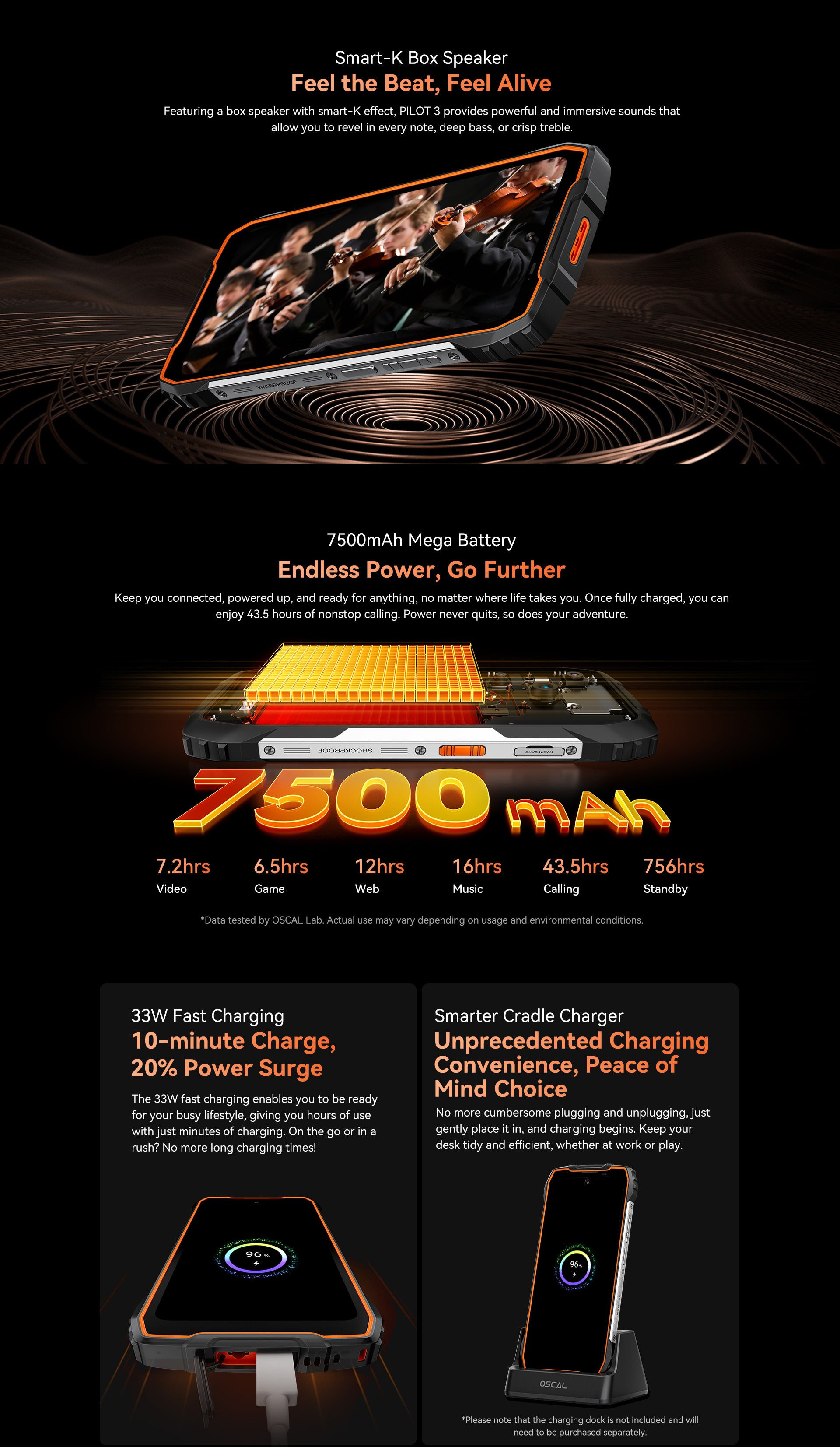 Equipped with a 7500mAh mega battery, the PILOT 3 ensures you stay connected and productive throughout your day. Paired with 33W rapid charging, you can quickly power up and get back to your tasks.