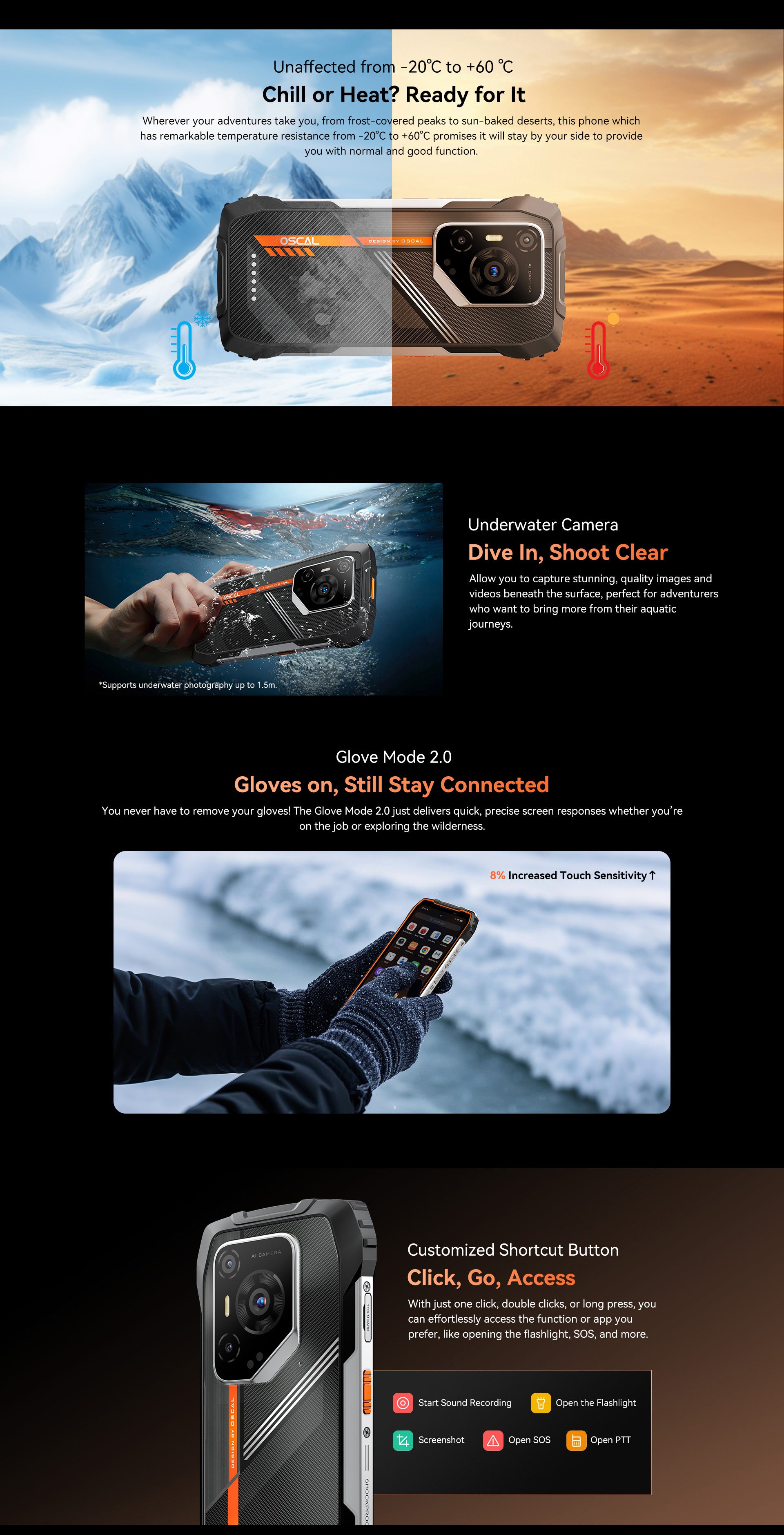 Introducing the OSCAL PILOT 3, the world's first 5G AI rugged smartphone powered by top-tier AI models. Designed for adventurers and professionals alike, the PILOT 3 combines cutting-edge technology with military-grade durability.